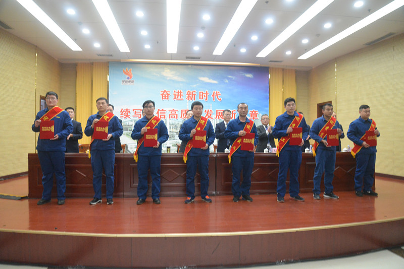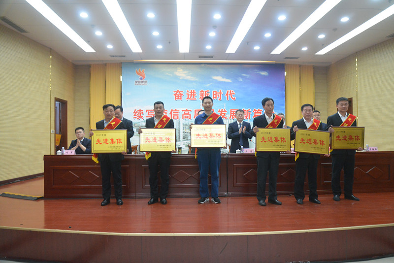 會(huì)議由集團(tuán)董事長(zhǎng)王謹(jǐn)主持。財(cái)務(wù)總監(jiān)于先長(zhǎng)宣讀了《關(guān)于授予2017年度先進(jìn)集體、先進(jìn)個(gè)人及2018年工作追兵集體的決定》。2017年度受到表彰的共有6個(gè)先進(jìn)集體、12個(gè)先進(jìn)班組、10名優(yōu)秀中層管理干部、5名青年干部標(biāo)兵、15名技術(shù)標(biāo)兵、28名優(yōu)秀班組長(zhǎng)、60名優(yōu)秀員工、5名優(yōu)秀黨員、10名改善之星、15名安全之星、3名金話筒獲得者,并給予3個(gè)單位黃牌鞭策。
